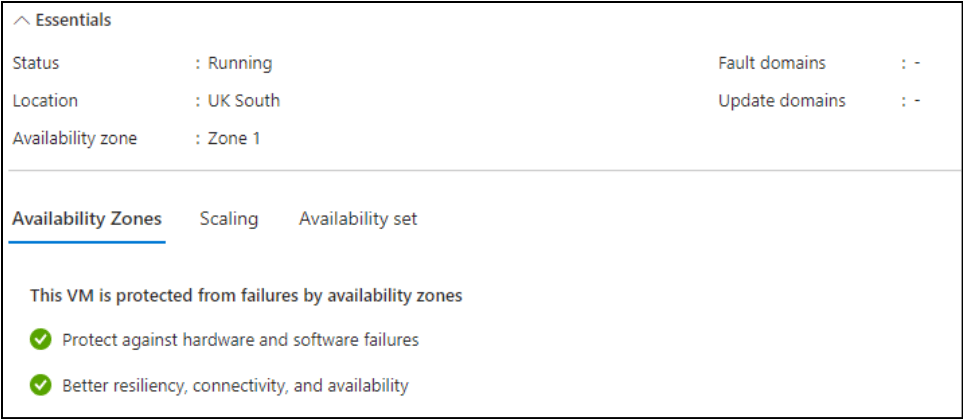 Lets say VM1 was deployed across two zones, Zone 1 and Zone 2, this means the resource is protected from a complete zone failure. E.g. all datacentres fail within Zone 1 the resource will still be available via Zone 2.